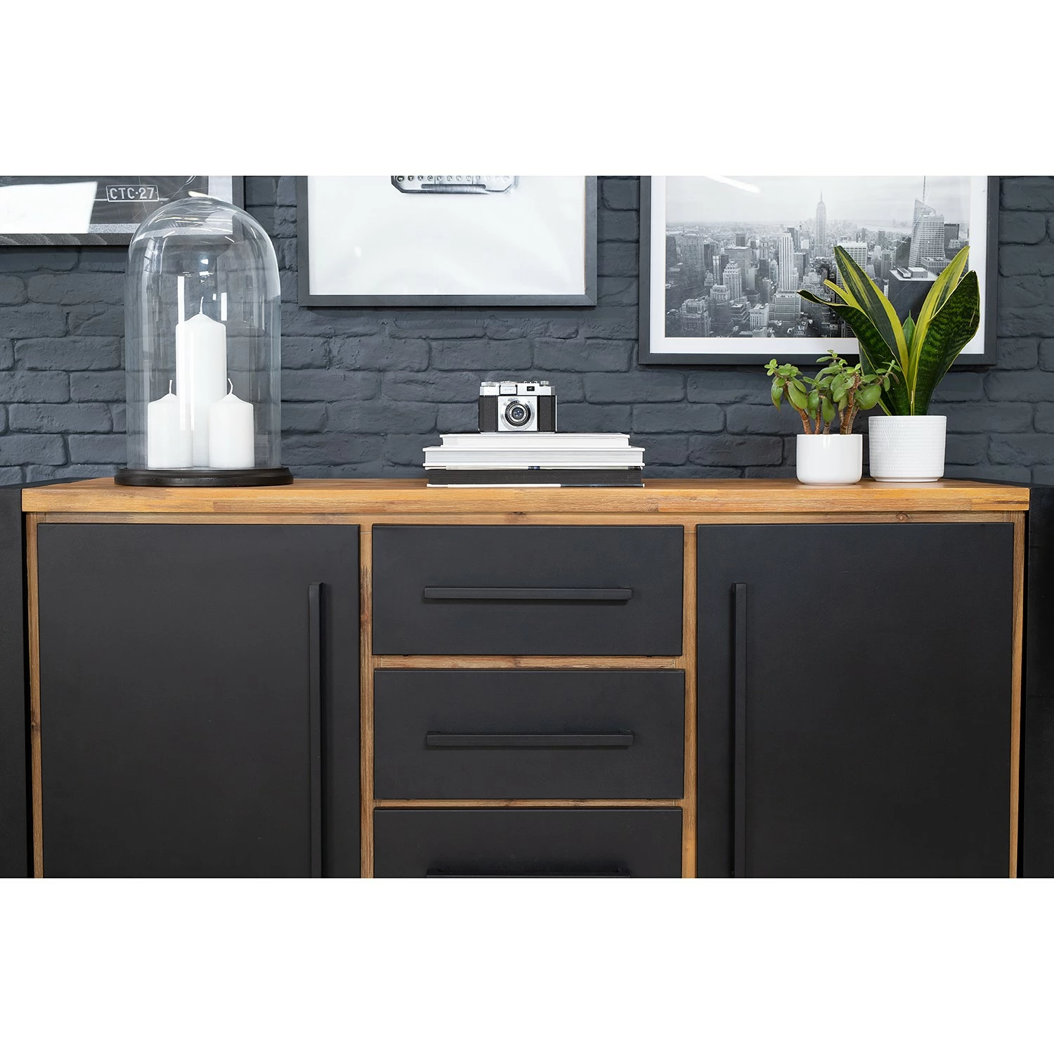 Ars manufacti Sideboard Urban Industry IV – Akazie teilmassiv / Metall – Akazie / Schwarz