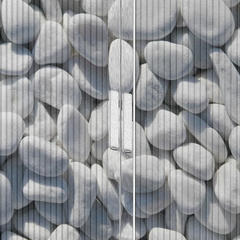 - Klare, geradlinige Form mit hellem Kieselstein-Muster
