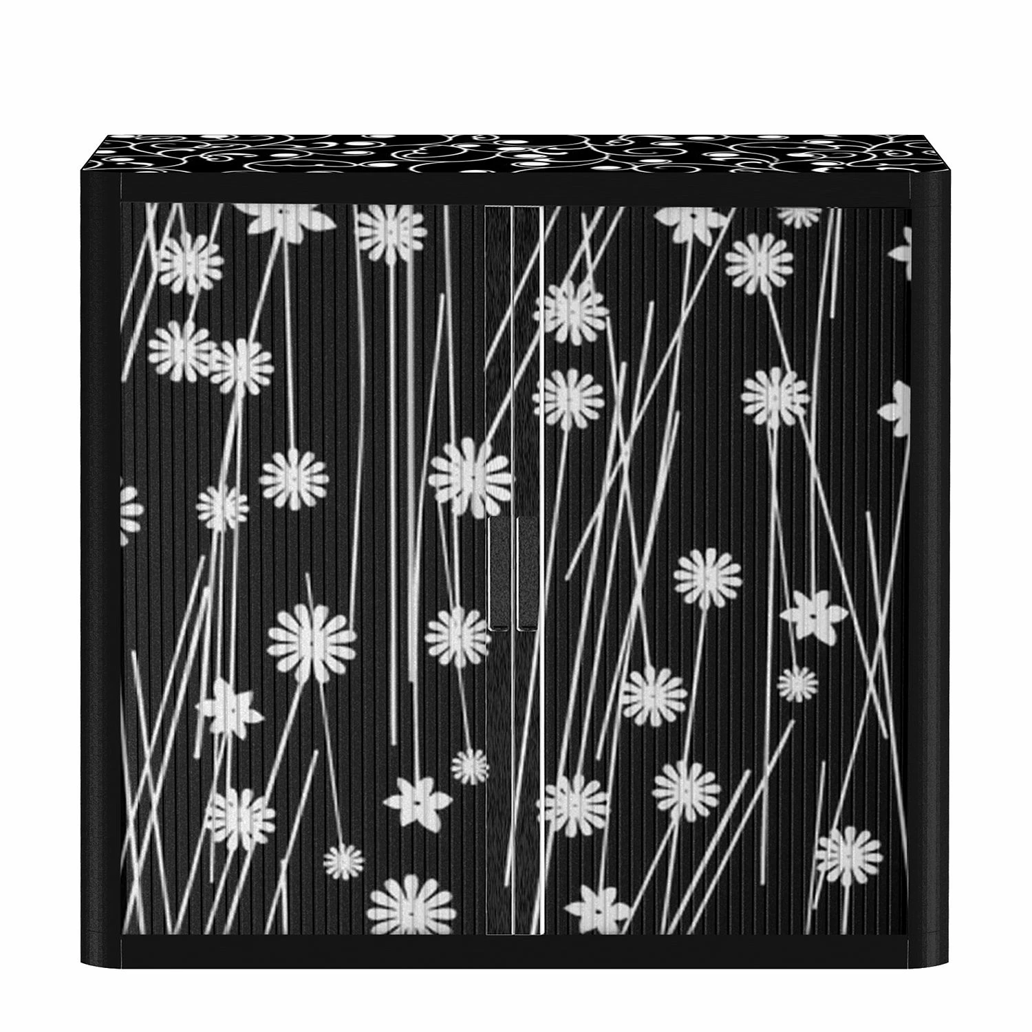 - Korpus: SchwarzOberplatte & Front: Schwarz mit weißen Blumen