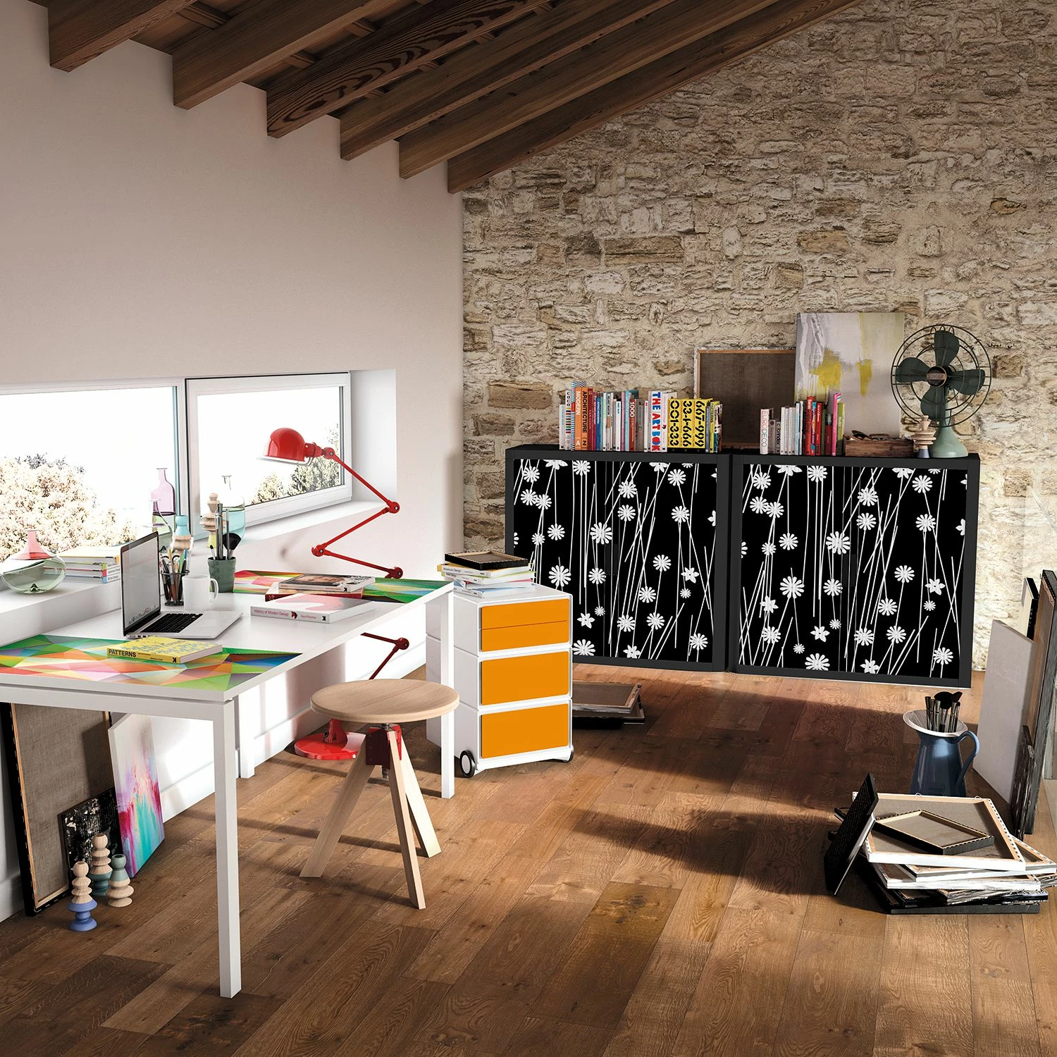 - Klare, geradlinige Form mit kontraststarkem Blumen-Motiv