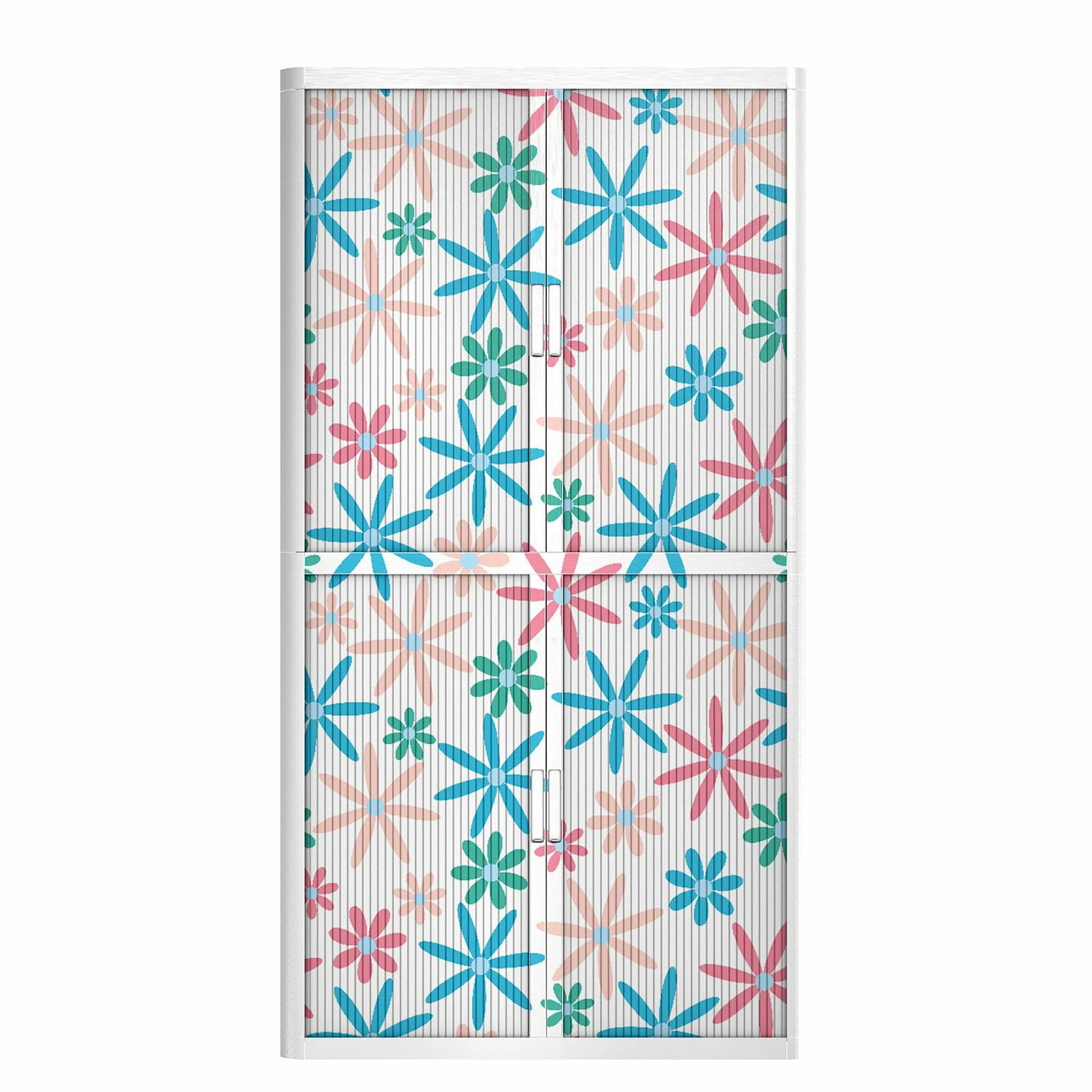 - Korpus: WeißOberplatte: TürkisFront: Weiß mit bunten Blüten