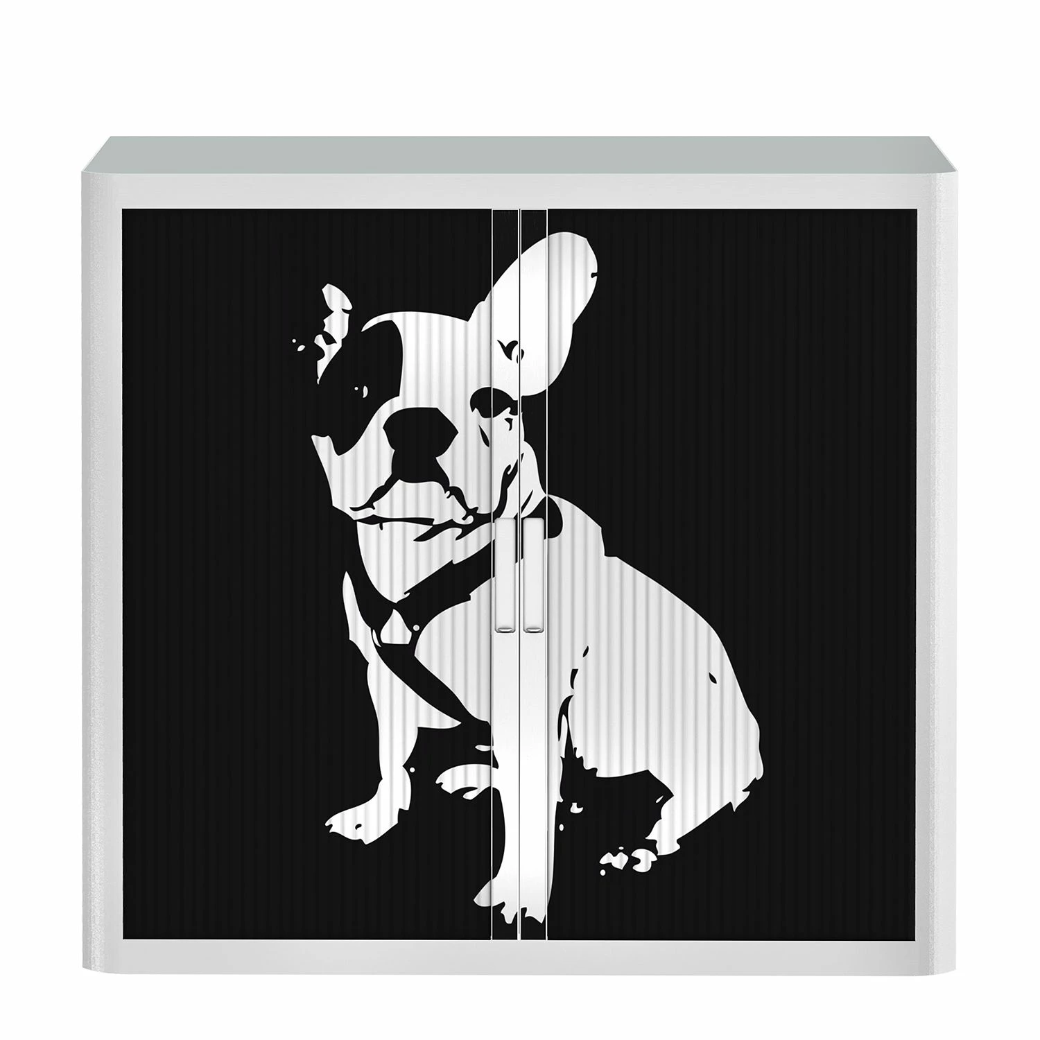 - Korpus: WeißOberplatte: HellgrauFront: Schwarz mit französischer Bulldogge