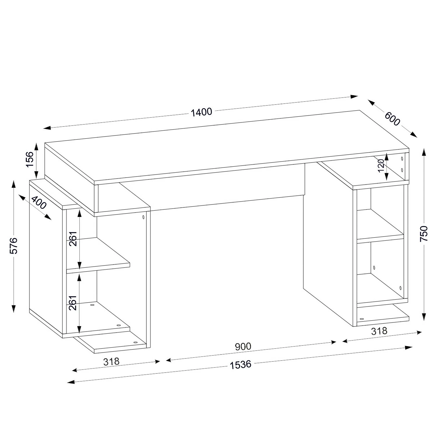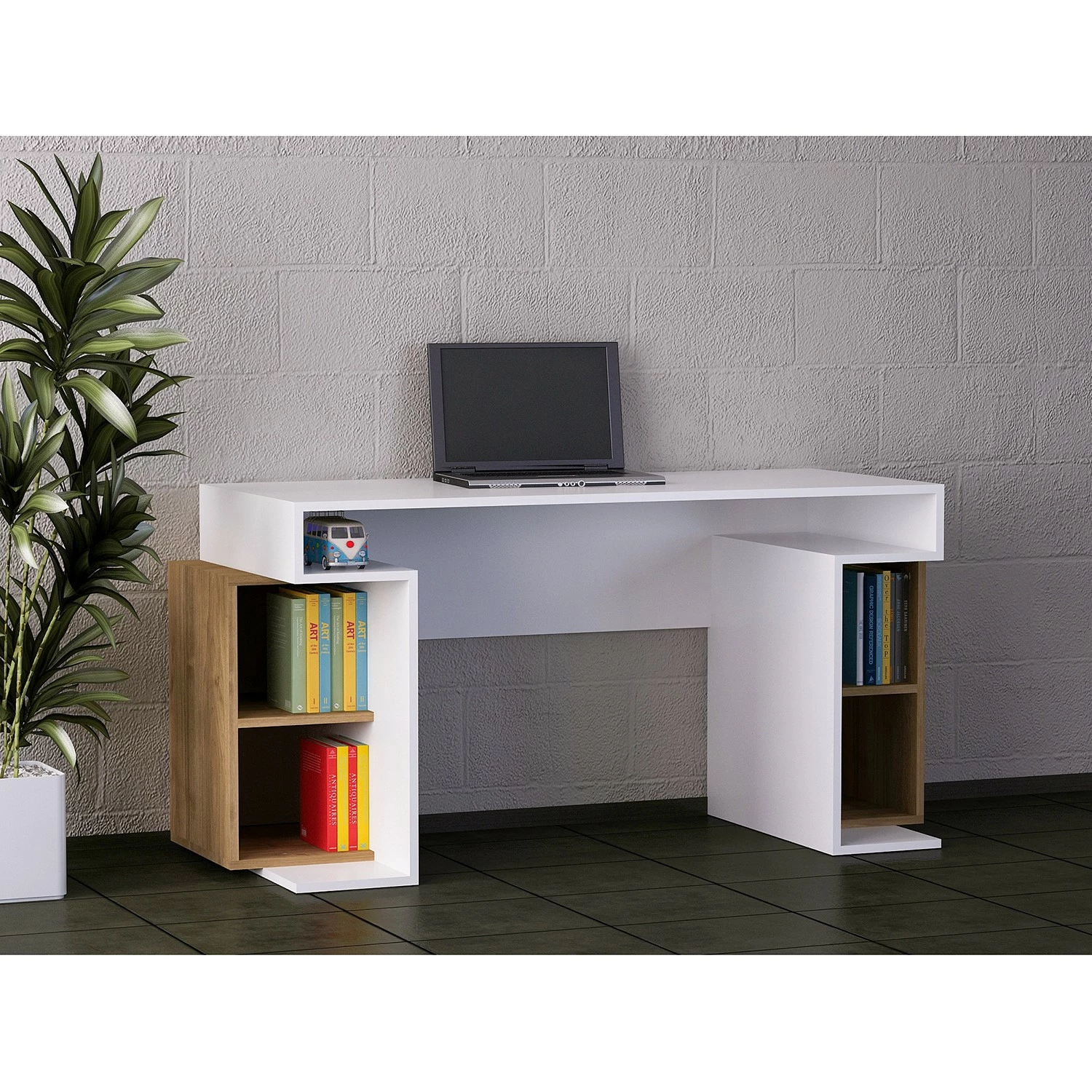 - Tischplatte & Korpus: Weiß