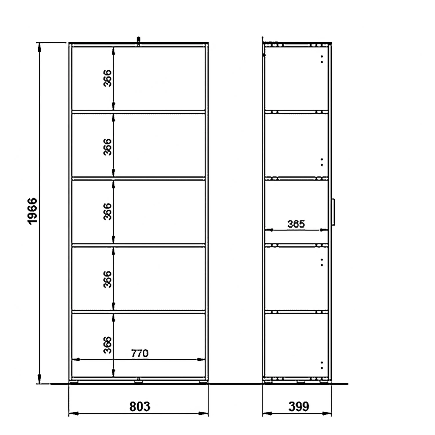 - Anzahl feste Fachböden: 5 Fachböden