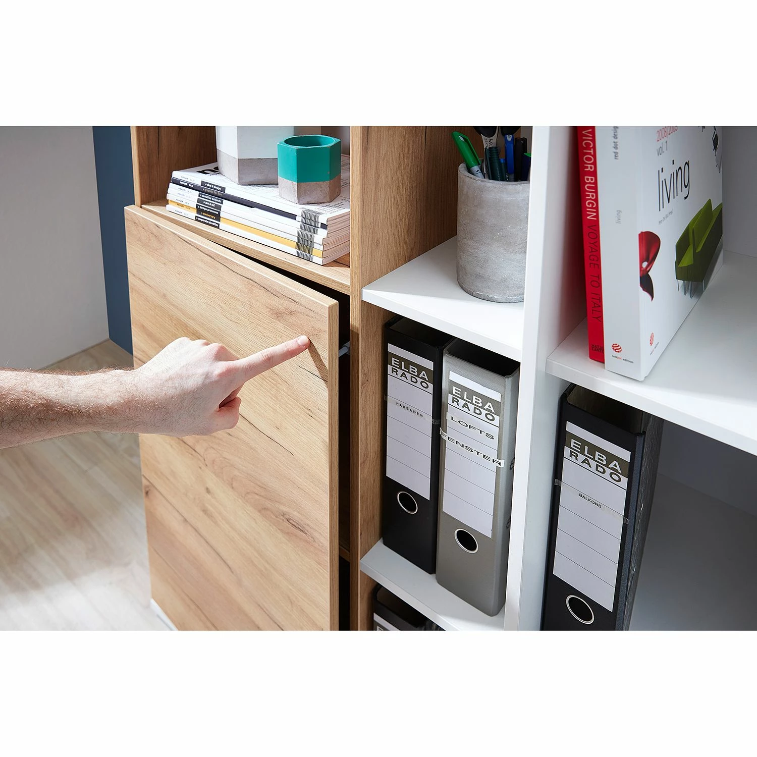 - 1 Holztür & 11 offene Fächer