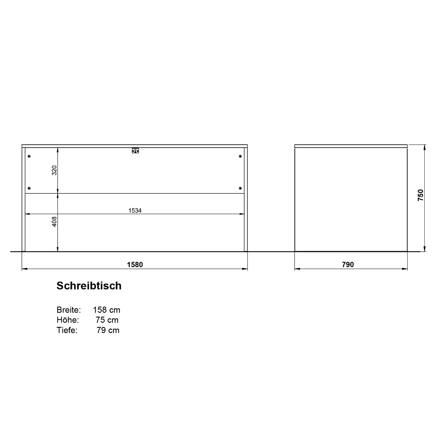 - Schreibtisch: 158 x 75 x 79 cm