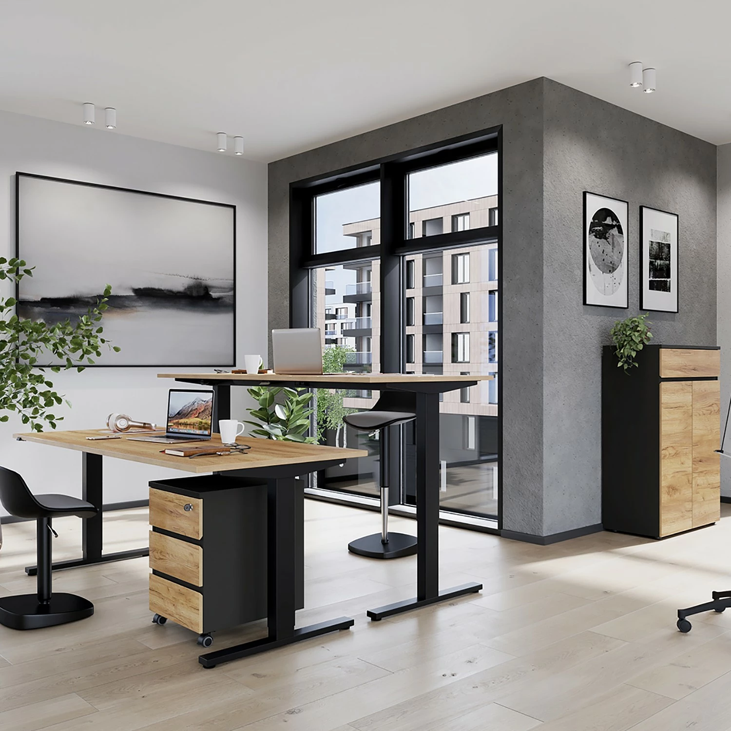 - Lieferumfang: Büroset bestehend aus 1 Schreibtisch, 1 Rollcontainer & 1 Aktenschrank