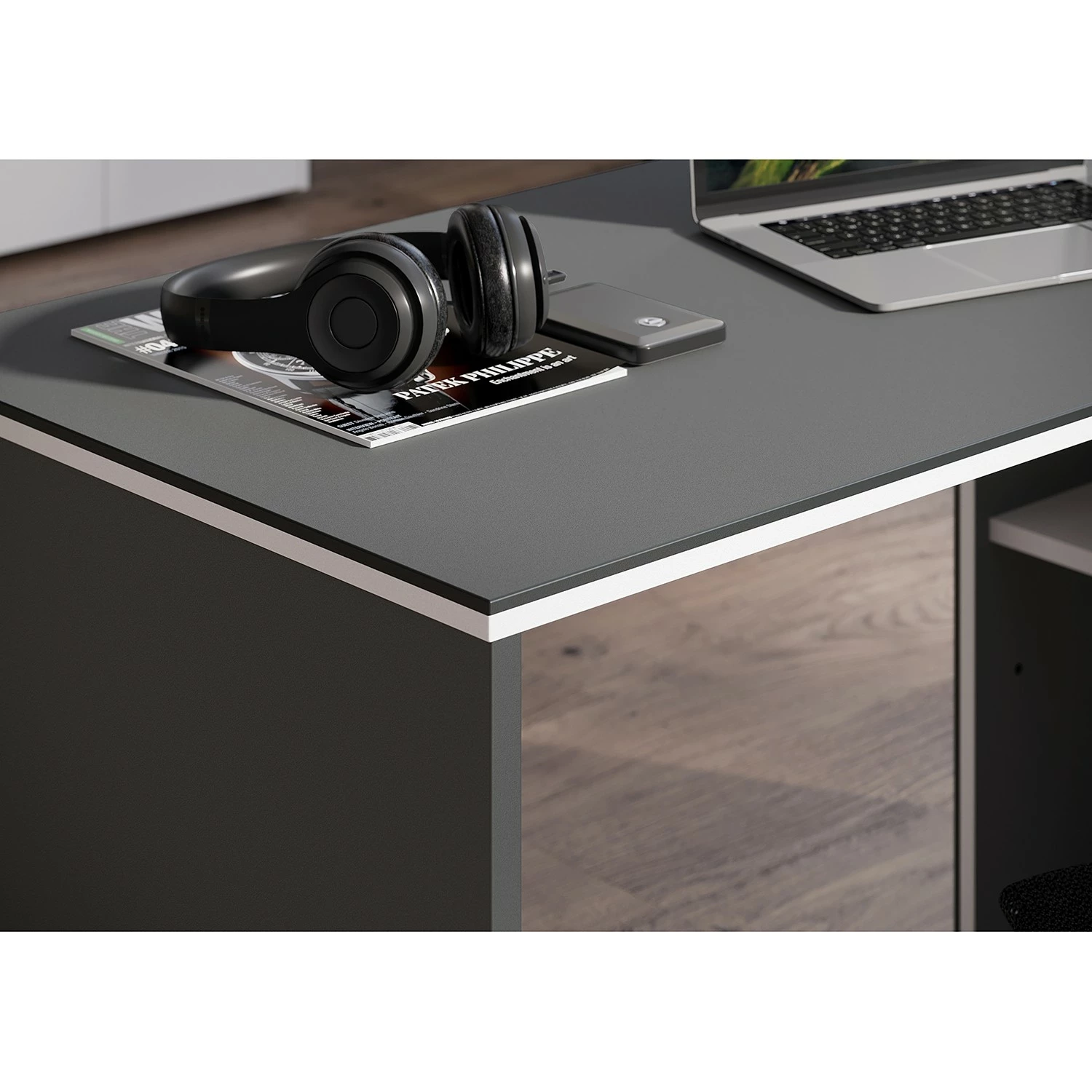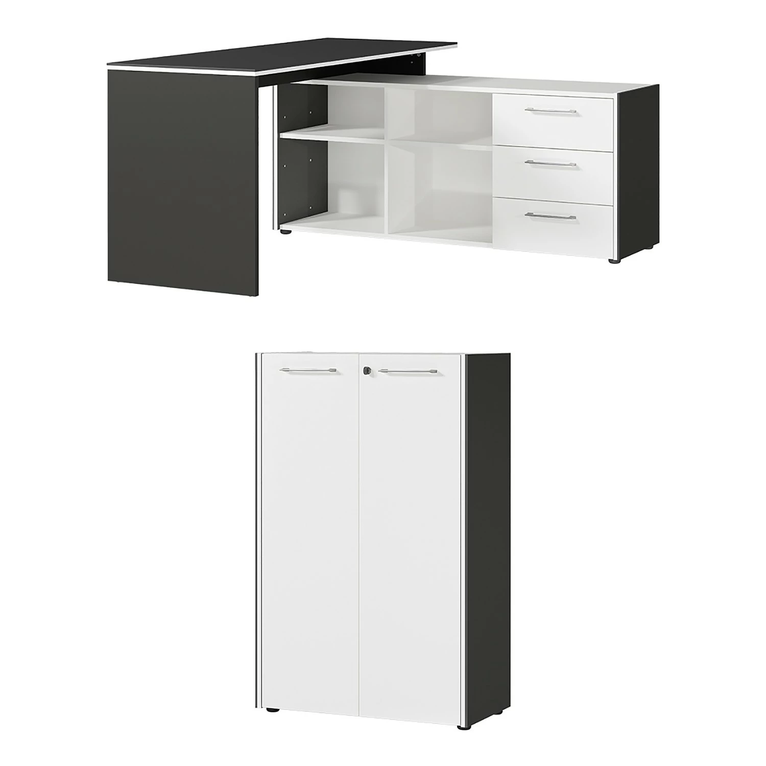 - Lieferumfang: Büroset bestehend aus 1 Eckschreibtisch & 1 Aktenschrank ohne Dekoration