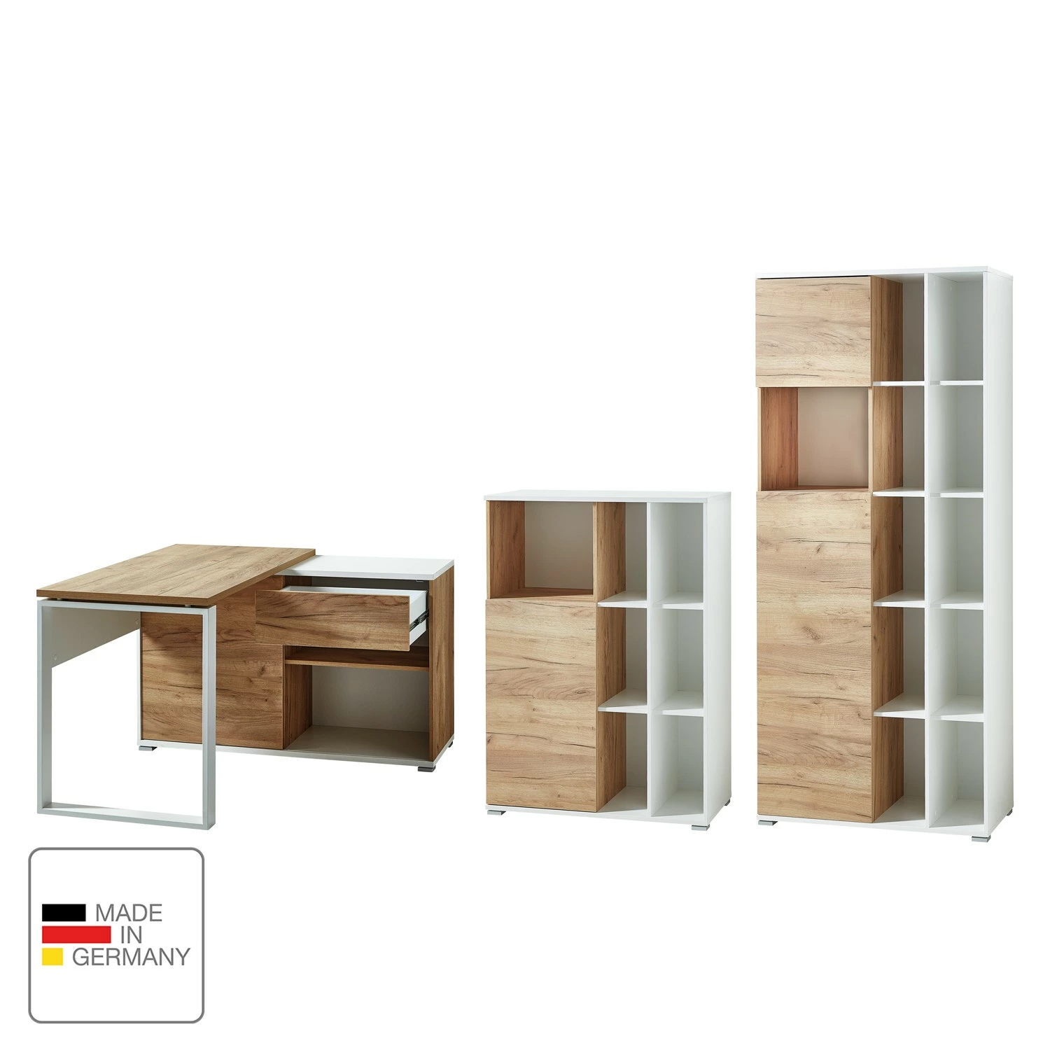 - Front: MDF (Mitteldichte Holzfaserplatte), foliert