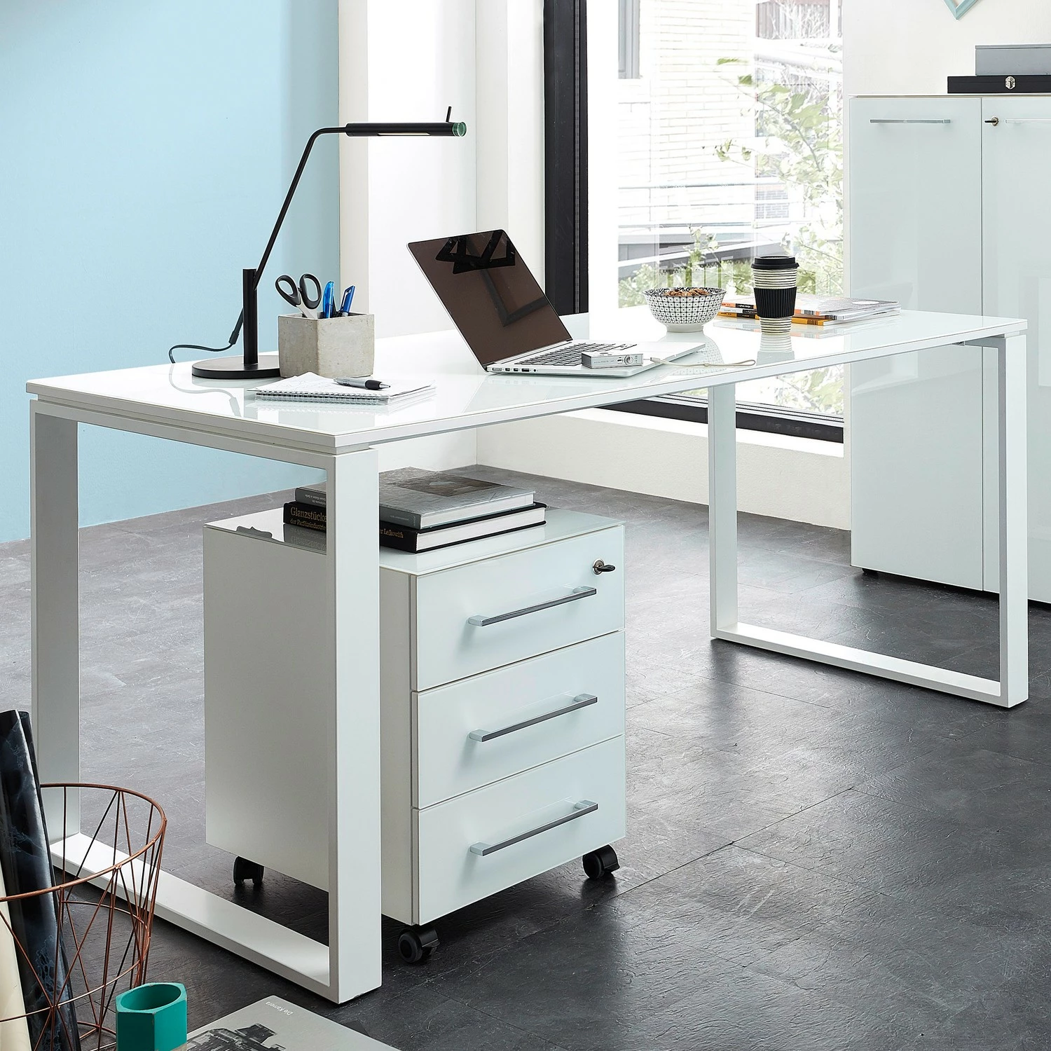 Germania Büroset Monteria II (2-teilig) – Glas – Weiß / Chrom