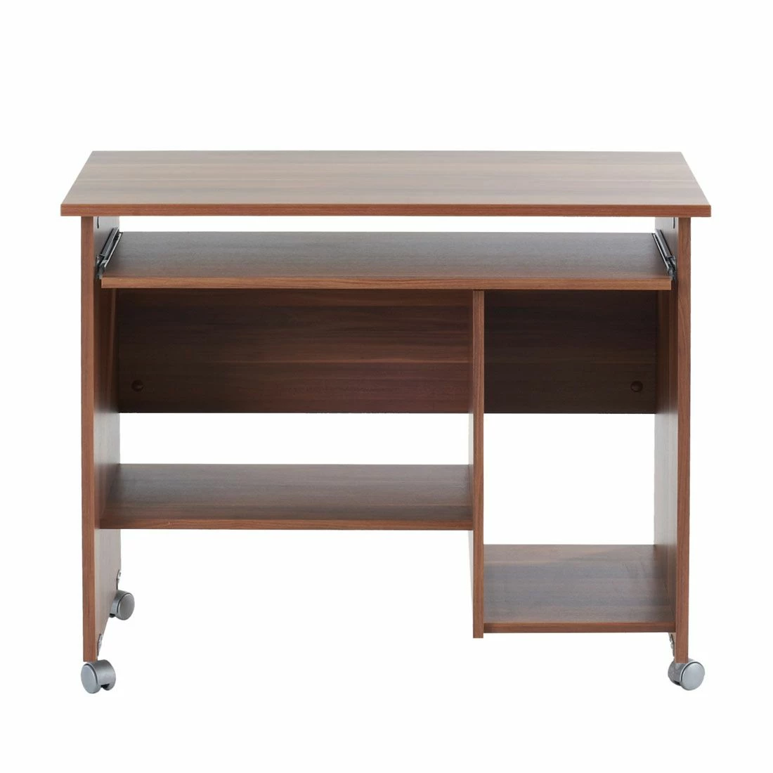 Für alle, die sich gerne modern einrichten, ist dieser braune Computertisch von Germania eine tolle Ergänzung zu den vorhandenen Möbeln. Das edle Walnussholz des Computertischs ist ein hochwertiges Material. Mithilfe der Rollen an den Beinen lässt er sich außerdem flexibel in verschiedenen Räumen nutzen.