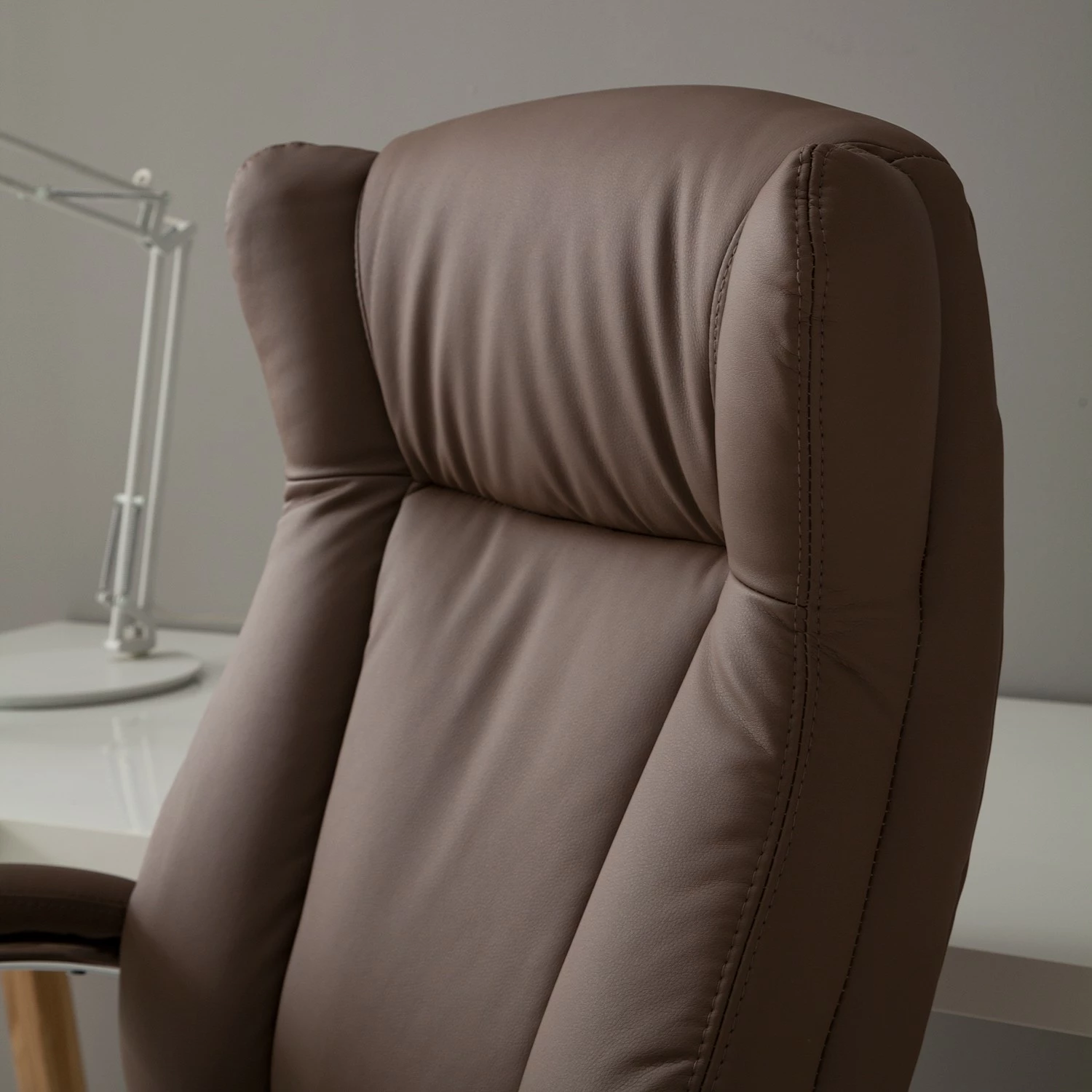 Der XXL Chefsessel Director von home24office bringt Ihnen den Komfort, den Sie am Arbeitsplatz benötigen. Der cappuccinofarbene Kunstlederbezug wirkt edel und sorgt für einen stilvollen Eyecatcher im Home Office oder im Büro. Durch die üppige Polsterung sowie den gepolsterten Armlehnen erhalten Sie ein ganz besonders luxuriöses Sitzgefühl, mit dem Sie locker Ihren Arbeitstag meistern können. Die Wippfunktion begünstigt diesen erstklassigen Komfort. Ausgestattet mit leichtgängigen Laufrollen und einer integrierten Höhenverstellung liefert Ihnen dieses Modell die Flexibilität, die Sie benötigen.
