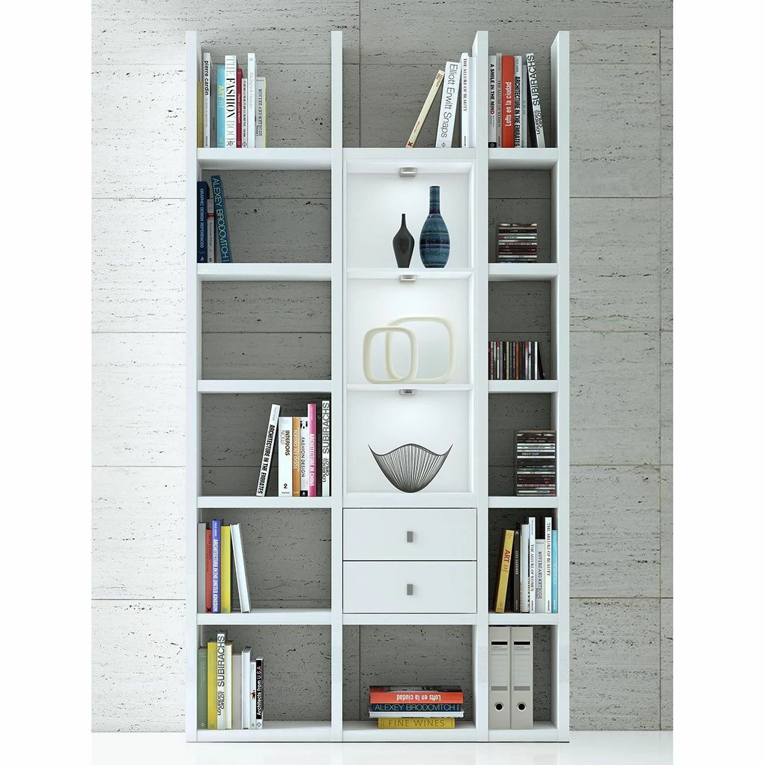 Darüber hinaus setzt die integrierte Beleuchtung das Regal hervorragend in Szene. In Verbindung mit einem Bürotisch im modernen Stil ergänzen Sie Ihre Wohnungseinrichtung mit diesem Regal von Fredriks stilsicher. Für diverse Wohnbereiche kreiert Fredriks urbane Produkte. Das Modell aus der Serie Emporior ist genau das Richtige, wenn Sie ein modernes Design bevorzugen.