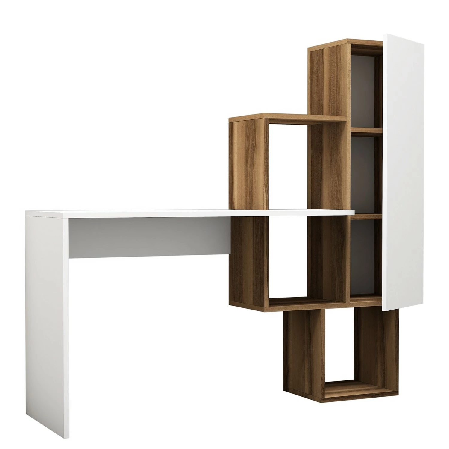 - Tischplatte, Korpus & Regal: MDF (Mitteldichte Holzfaserplatte), melaminbeschichtet