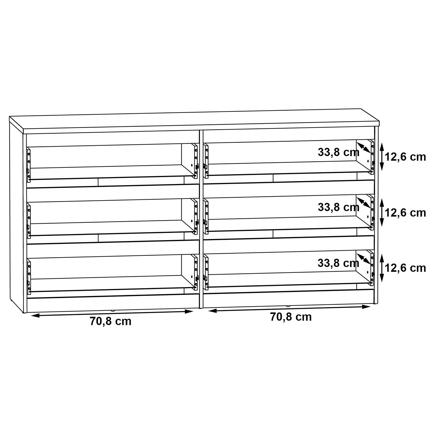- Innenmaße Schubladen: je 70,8 x 33,8 cm