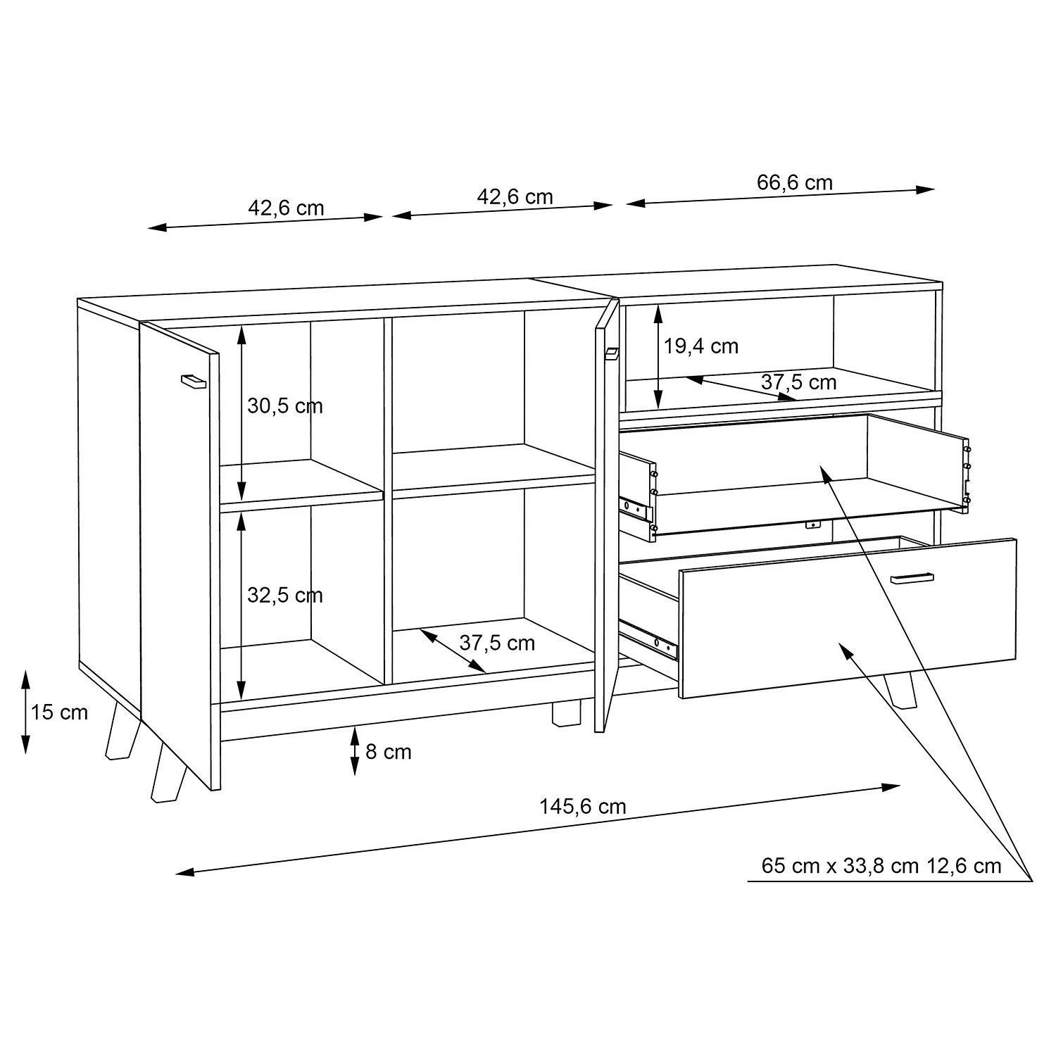 Loftscape Sideboard Pesaro I – Eiche Artisan Dekor / Schwarz