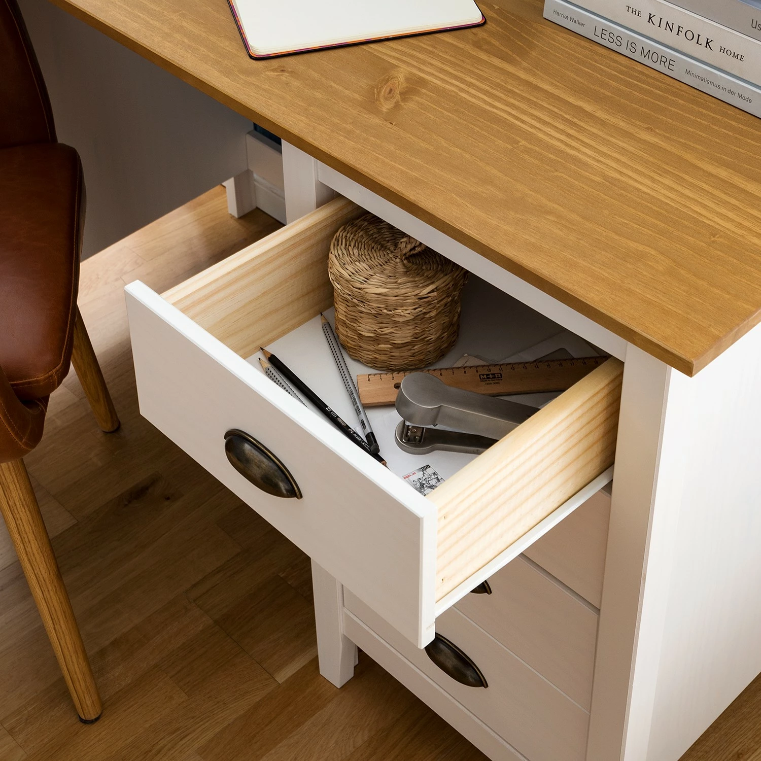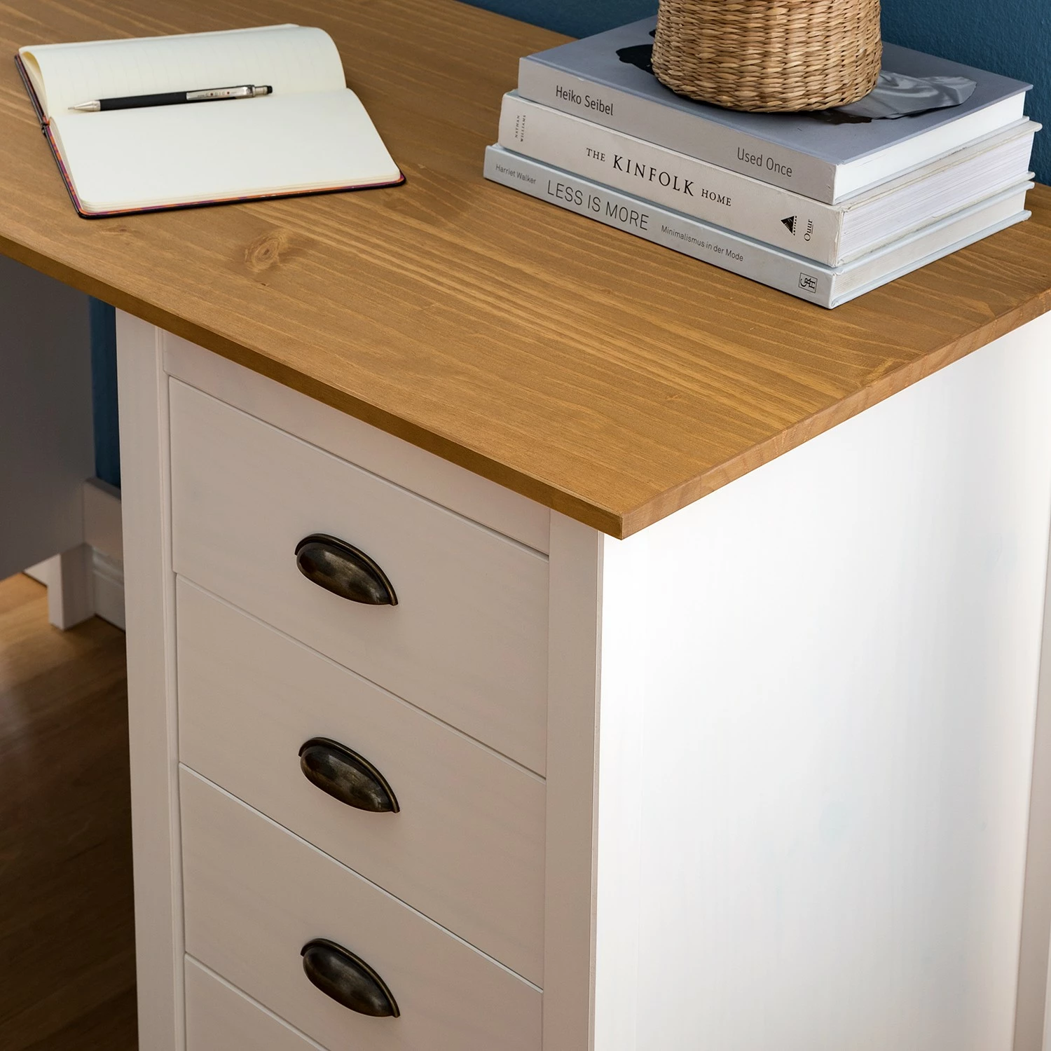 - Front & Korpus: Massivholz Kiefer, lackiert