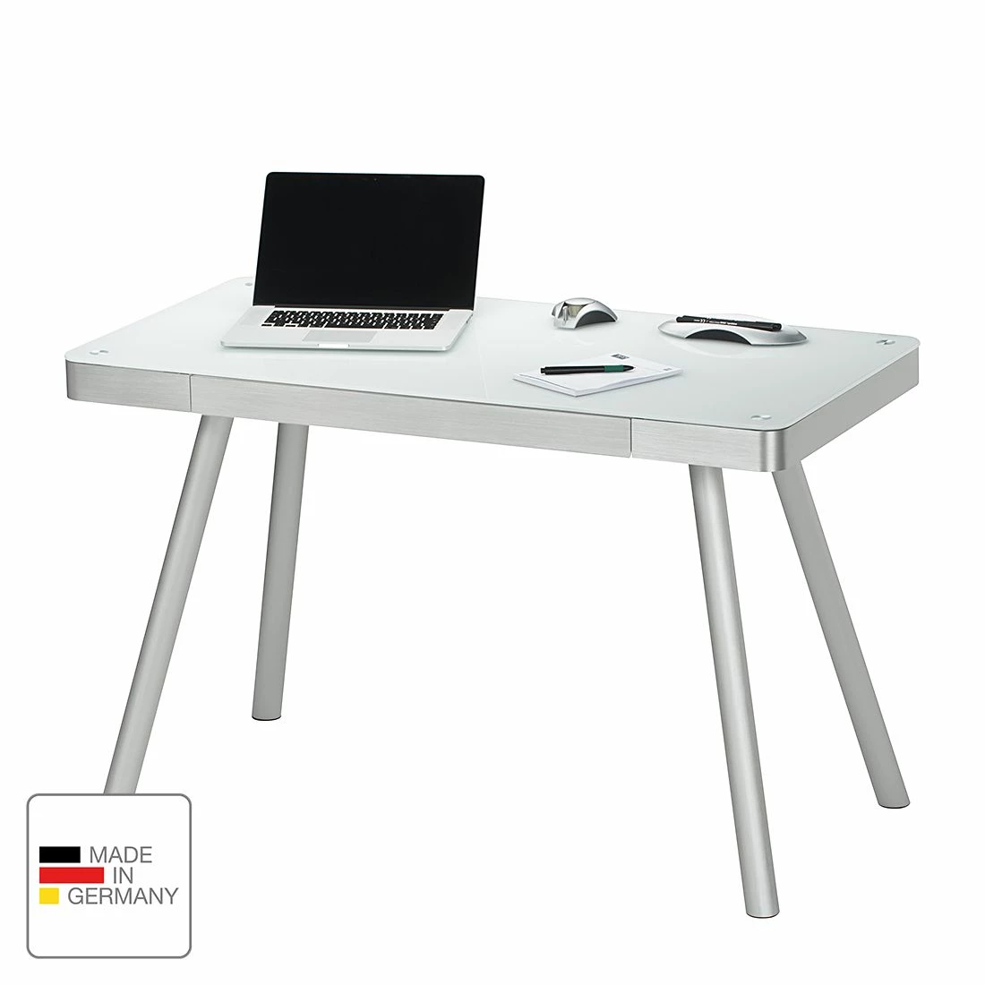 - Tischplatte: WeißKorpus: Silber, matt