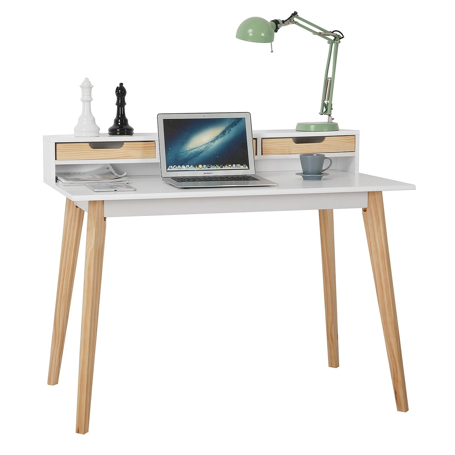 Mørteens Schreibtisch Adeele – Pinie teilmassiv – Weiß / Pinie Honig