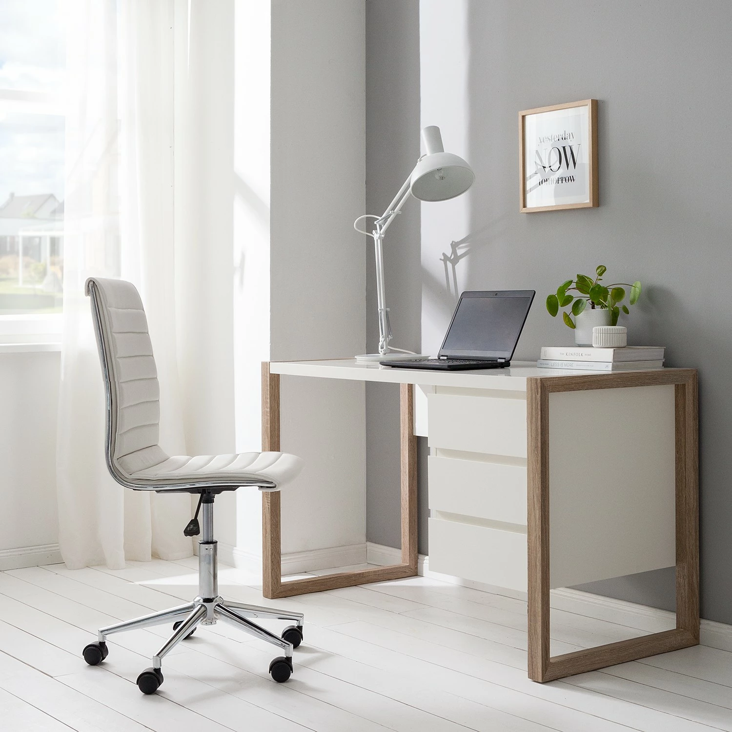Mørteens Schreibtisch Avusy – Weiß/Eiche Sonoma Dekor