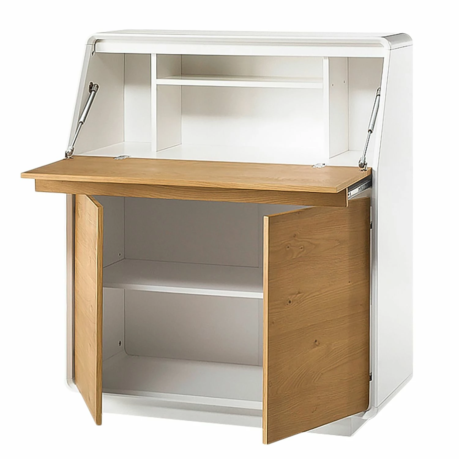 - 1 Klapptür mit Stützauszug, 4 Fächer