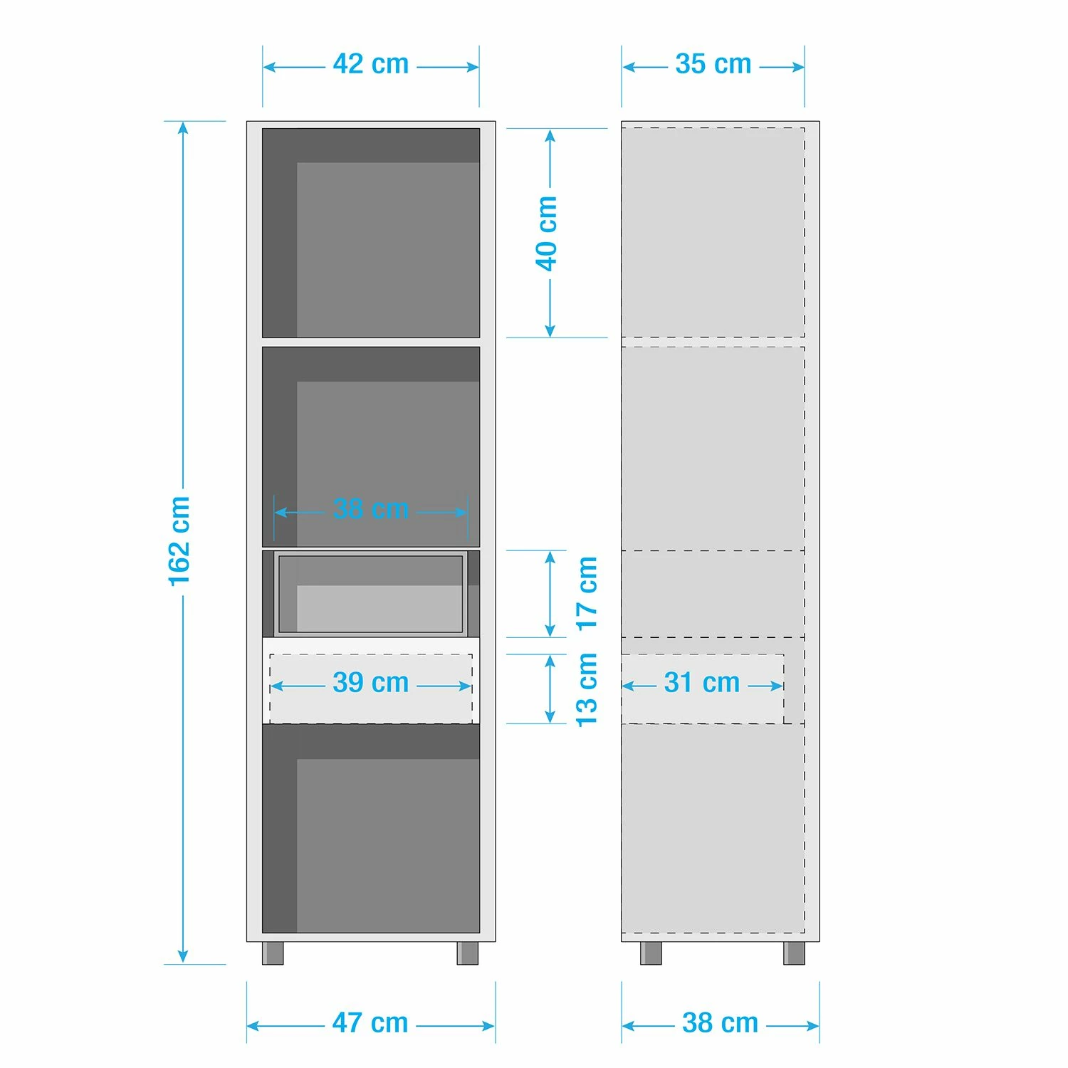 - Anzahl feste Fachböden: 1 Fachboden