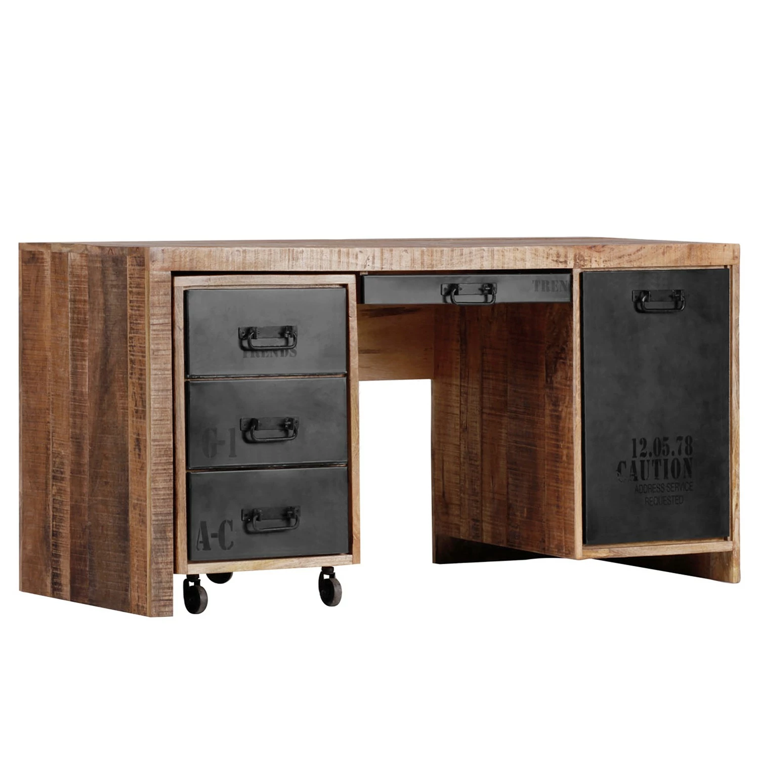 - Griffe, Schubladenfront, Tastaturauszug & Tür: Eisen, lackiert