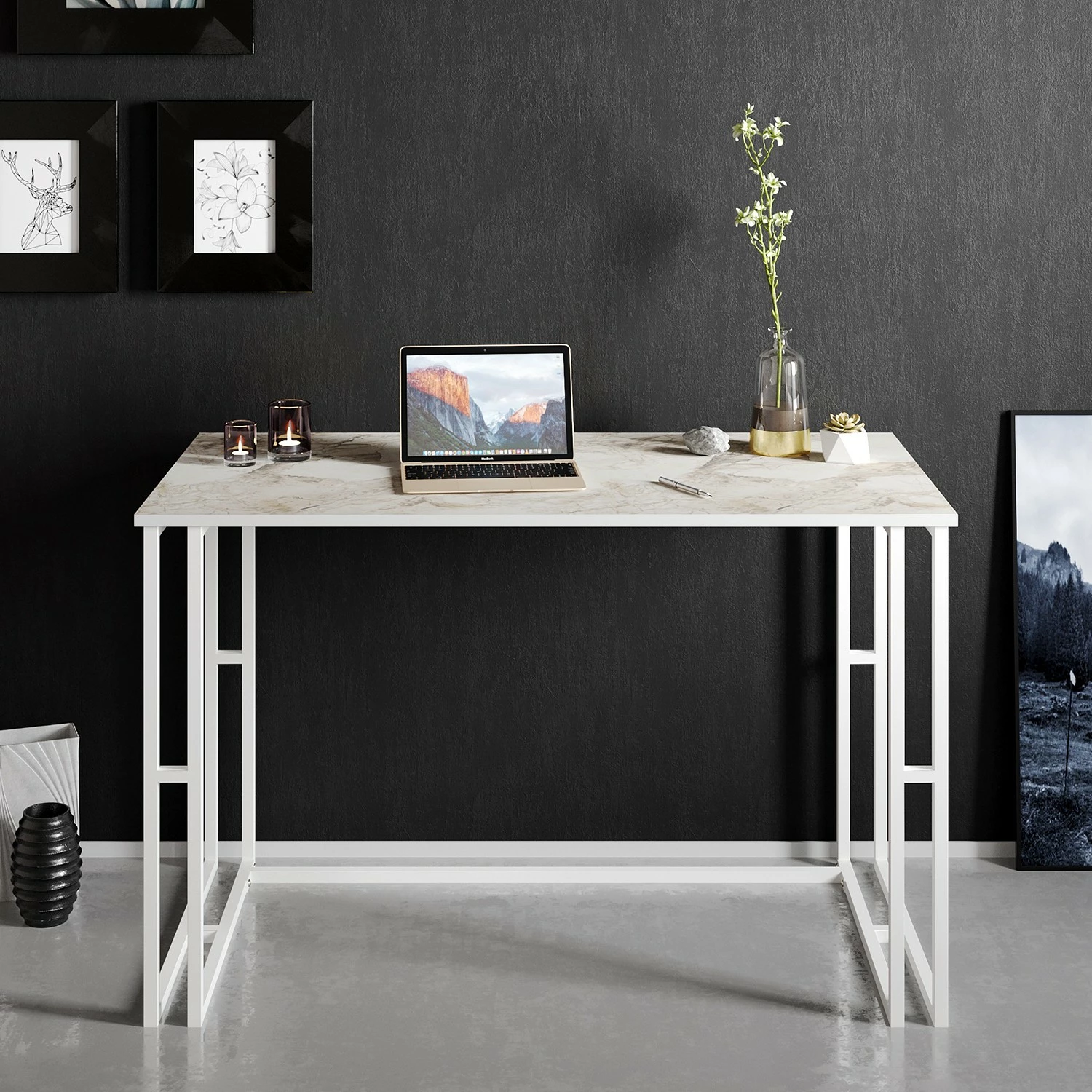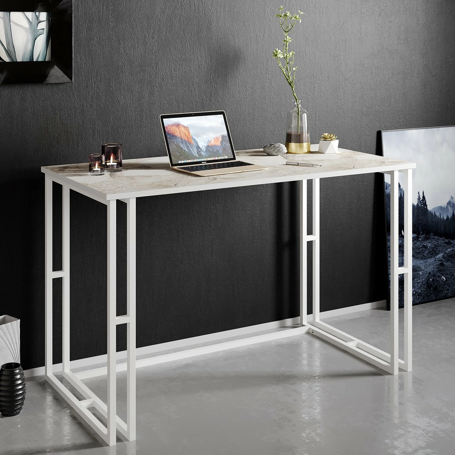- Tischplatte: Marmor Weiß Dekor