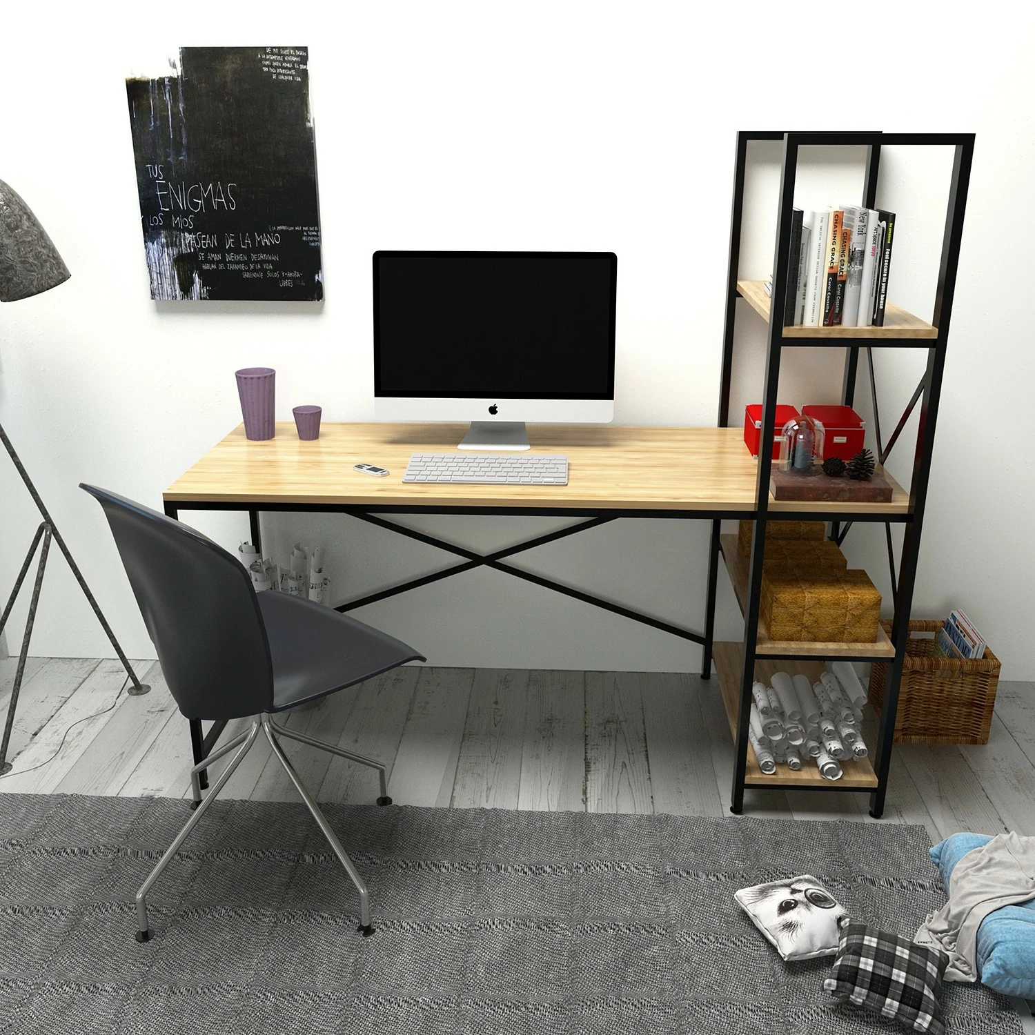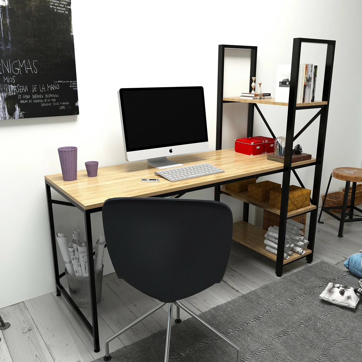 - Tischplatte & Ablage: MDF (Mitteldichte Holzfaserplatte), melaminbeschichtet
