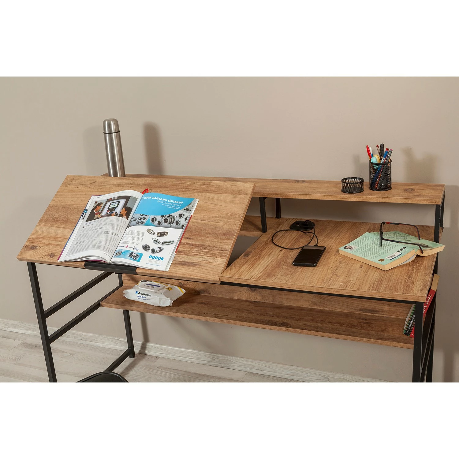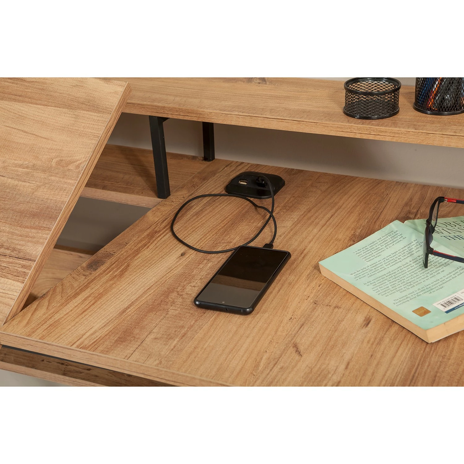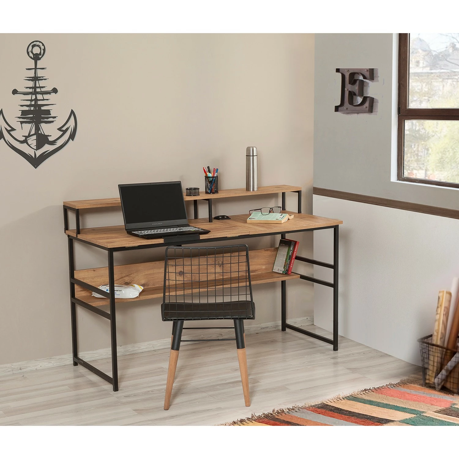 Red Living Schreibtisch Liroi – Kiefer Dekor / Schwarz