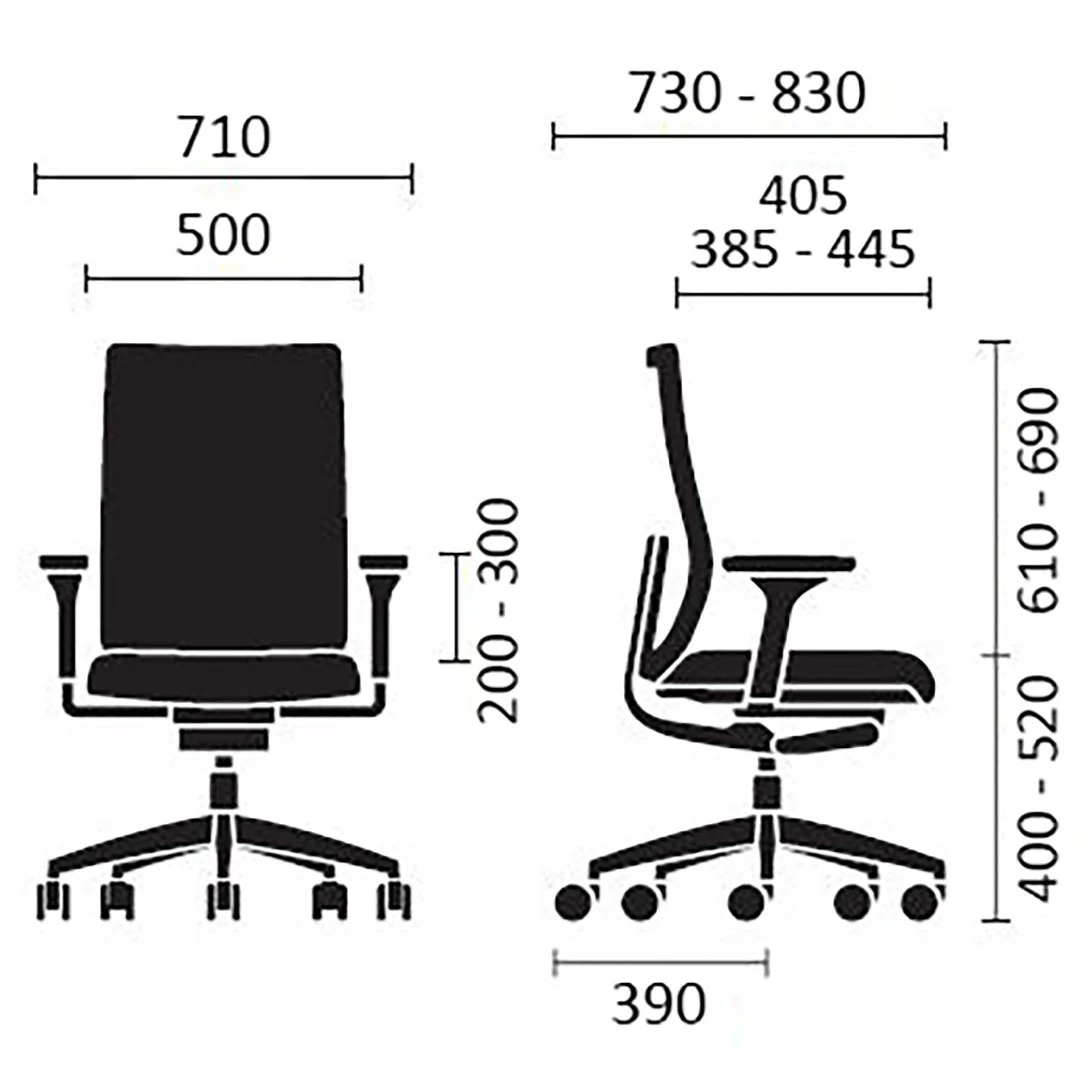 - Sitztiefe: 38,5 – 44,5 cm