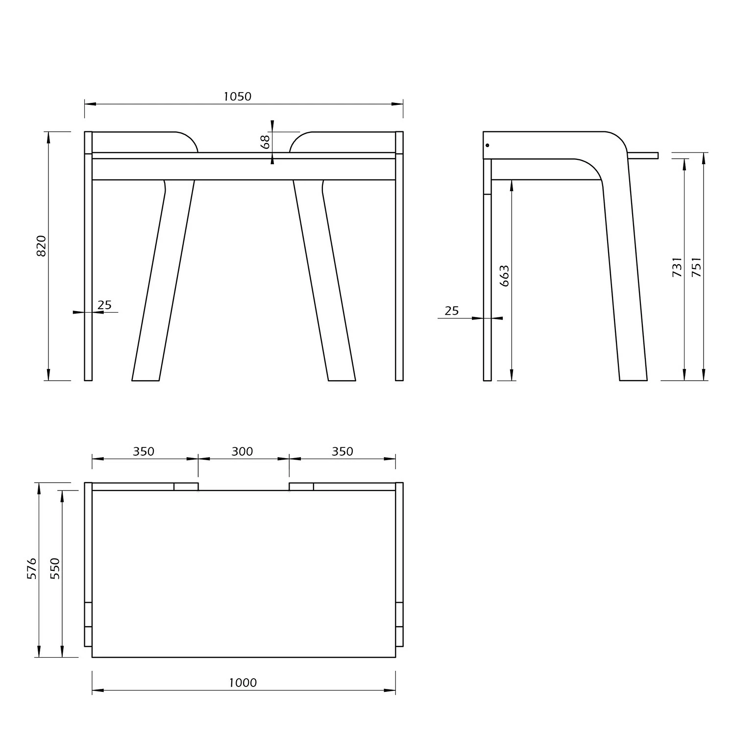 - Höhe Tischrahmenunterkante: 73 cm