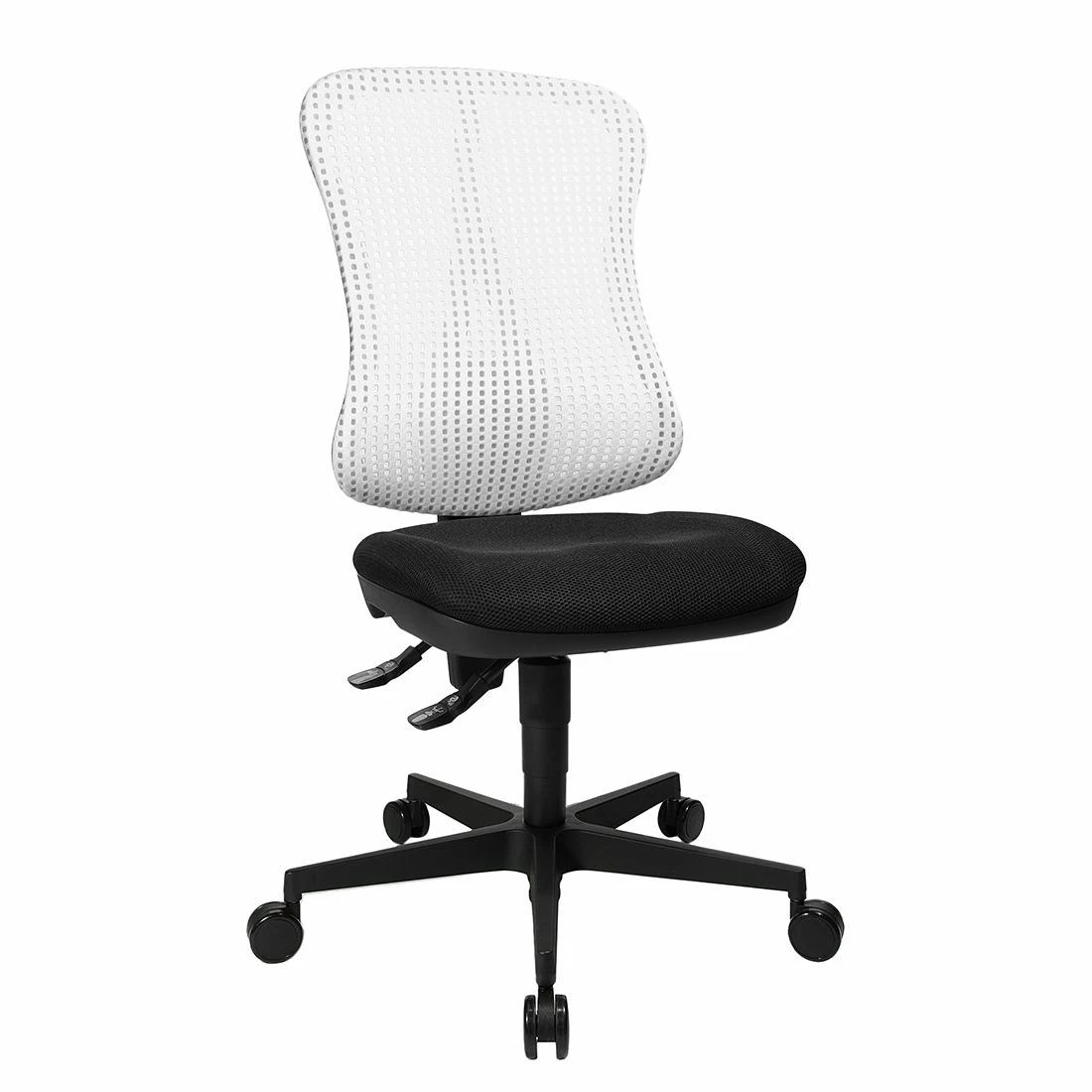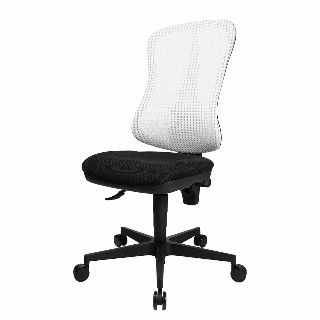 Kombiniert mit einem Schreibtisch im modernen Stil ergänzen Sie Ihre Einrichtung mit diesem weiß-schwarzen Stuhl von Topstar stilsicher. Der unkomplizierte Kunststoff des Bürostuhls könnte kaum leichter zu pflegen sein. Darüber hinaus ist die Sitzfläche bei diesem Bürostuhl dank des Bezugs aus Stoff angenehm weich. Eine echte Besonderheit ist bei diesem Bürostuhl die individuelle Höhenverstellbarkeit.