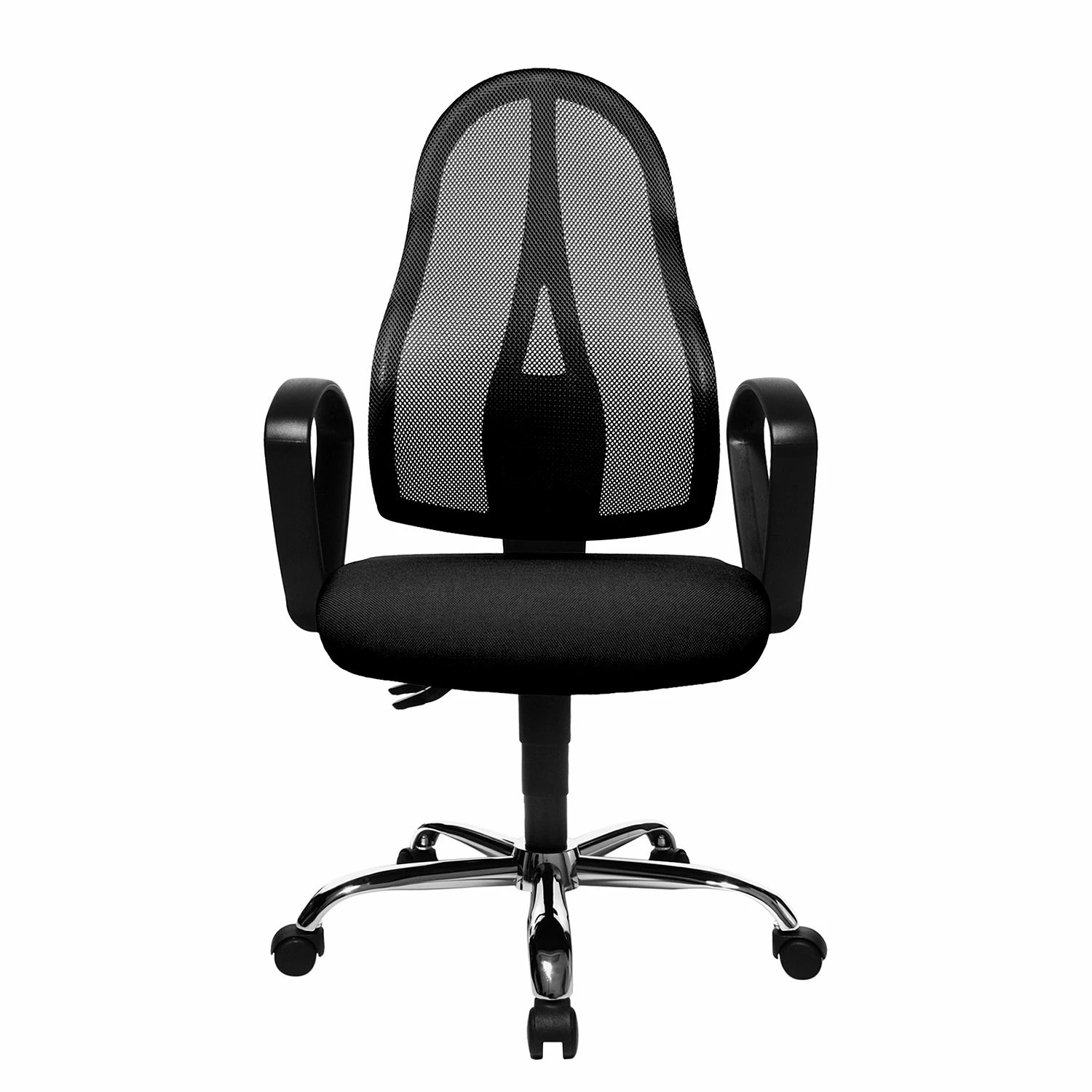 Mit diesem schwarzen Bürostuhl bietet Topstar die perfekte Sitzgelegenheit für Menschen mit einer modernen Einrichtung. Nicht zuletzt erwähnenswert ist auch die individuelle Höhenverstellbarkeit dieses Bürodrehstuhls. Der unkomplizierte Kunststoff des Bürodrehstuhls könnte kaum leichter zu pflegen sein. Mithilfe der Rollen an den Beinen lässt er sich außerdem flexibel in unterschiedlichen Räumen nutzen. Mit dem Bezug aus Netzstoff und Stoff überzeugt der Bürodrehstuhl darüber hinaus mit Behaglichkeit.
